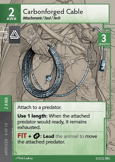 This card is a little more situational to get its full effect. Exhausting two for the price of one can be helpful, especially if you have a big predator but can target a 1 presence being instead (then use this card to exhaust the predator). It would synergize well with Carbonforged Cable. You wouldn’t trigger fatigue for exhausting the second being since this is a Response, so that being could be anywhere in the environment.