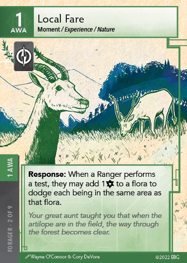 Local Fare is one of the situational Forager cards, but it can be nice in a pinch to avoid fatigue. If you’re Within Reach area has a couple beings in it, you can dodge them all to interact with something further away.