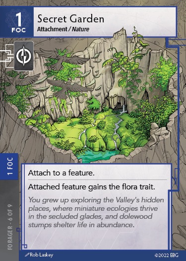 You would take Secret Garden to give yourself another way to start building your Flora engine, but I prefer Green Thumb which accomplishes the same thing and lets you find a feature you want. You may want to start with Secret Garden in your deck then pare down to 1 or no copies of it depending on how many Flora you like to have in play. Keep in mind it is an Attachment so you cannot add it after deck construction.