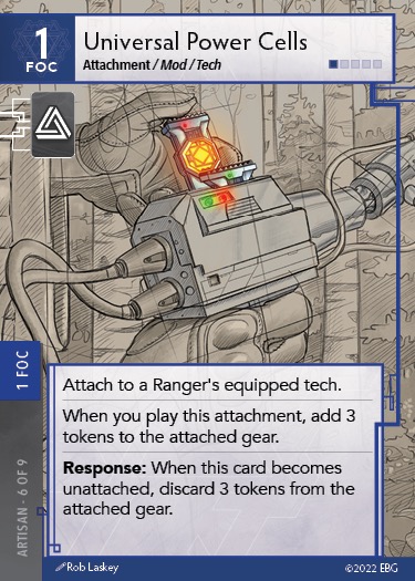 To get the most out of this card you need a way to replenish tokens on it. The tech and aid card types synergize well with roles in Artificer and Conciliator.