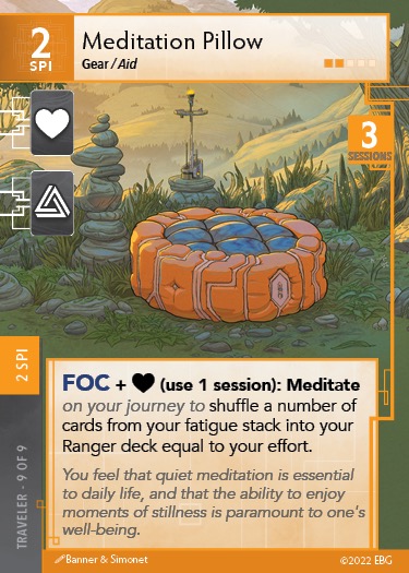 In my previous campaign I rarely performed the Remember test because it effectively shortens the day. With Meditation Pillow, however, that is much less of a concern because I can replenish the Ranger deck from the Fatigue stack. Also, with the Exhaust ability of Rod of the Clouds, I scouted my Ranger deck every turn so I could nearly guarantee that my next draw would help.